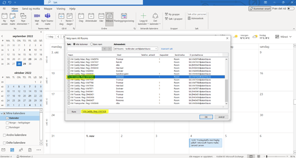 I denne veiledningen vil du finne svar på hvordan du benytter Outlook for å finne ledige biler og hvordan du booker disse.