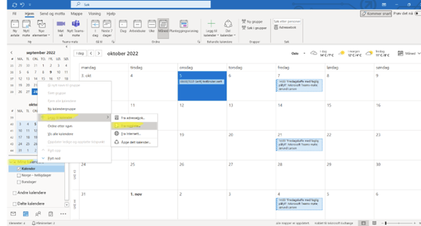 For å kunne se hvem som har booket en aktuell bil på et gitt tidspunkt, må kalenderen for den bilen legges til i Outlook. Dette gjøres ved å: