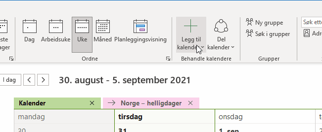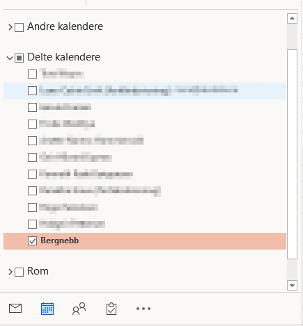 Legge til rom-, ressurs- eller ansatt-kalender i Outlook