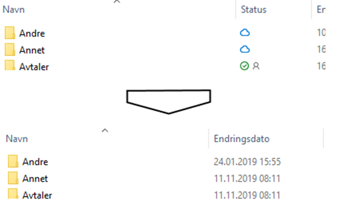 3. Når området er stoppet å synkronisere vil kolonnen «Status» forsvinne i Windows Utforsker